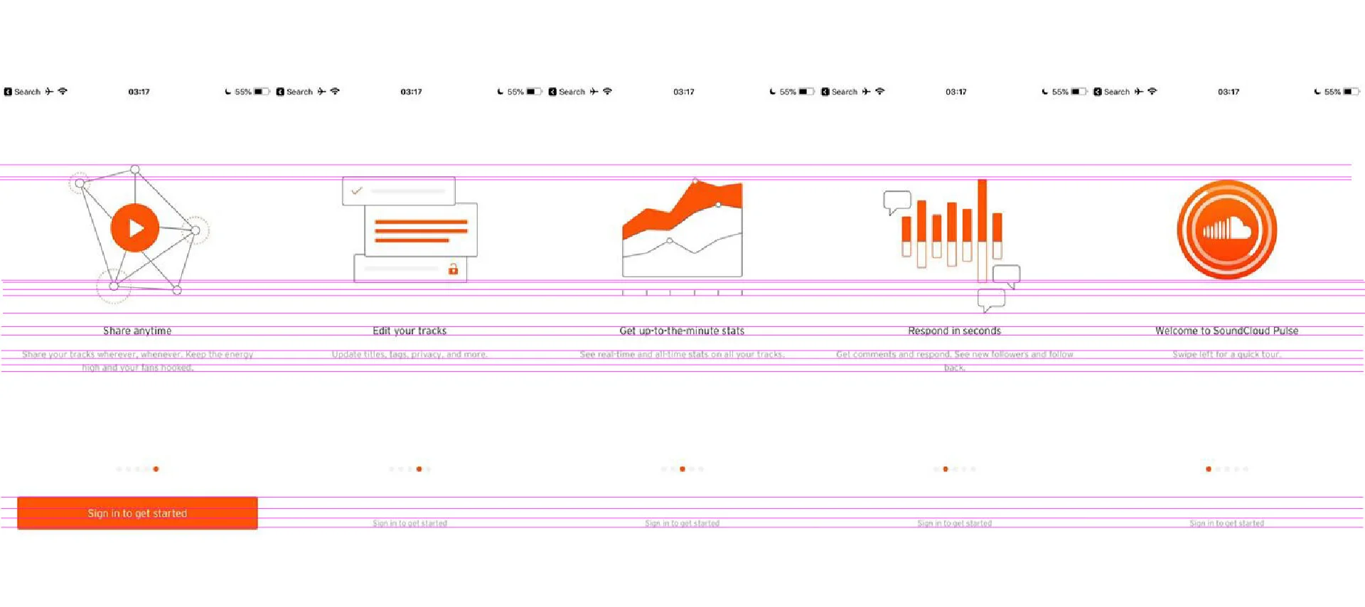 Before jumping in, I built assets from around the application (like the signature SoundCloud orange and free typefaces mimicking SoundCloud’s Interstate with Lucida). Their visual system doesn’t suit my taste, but we work with what we got.